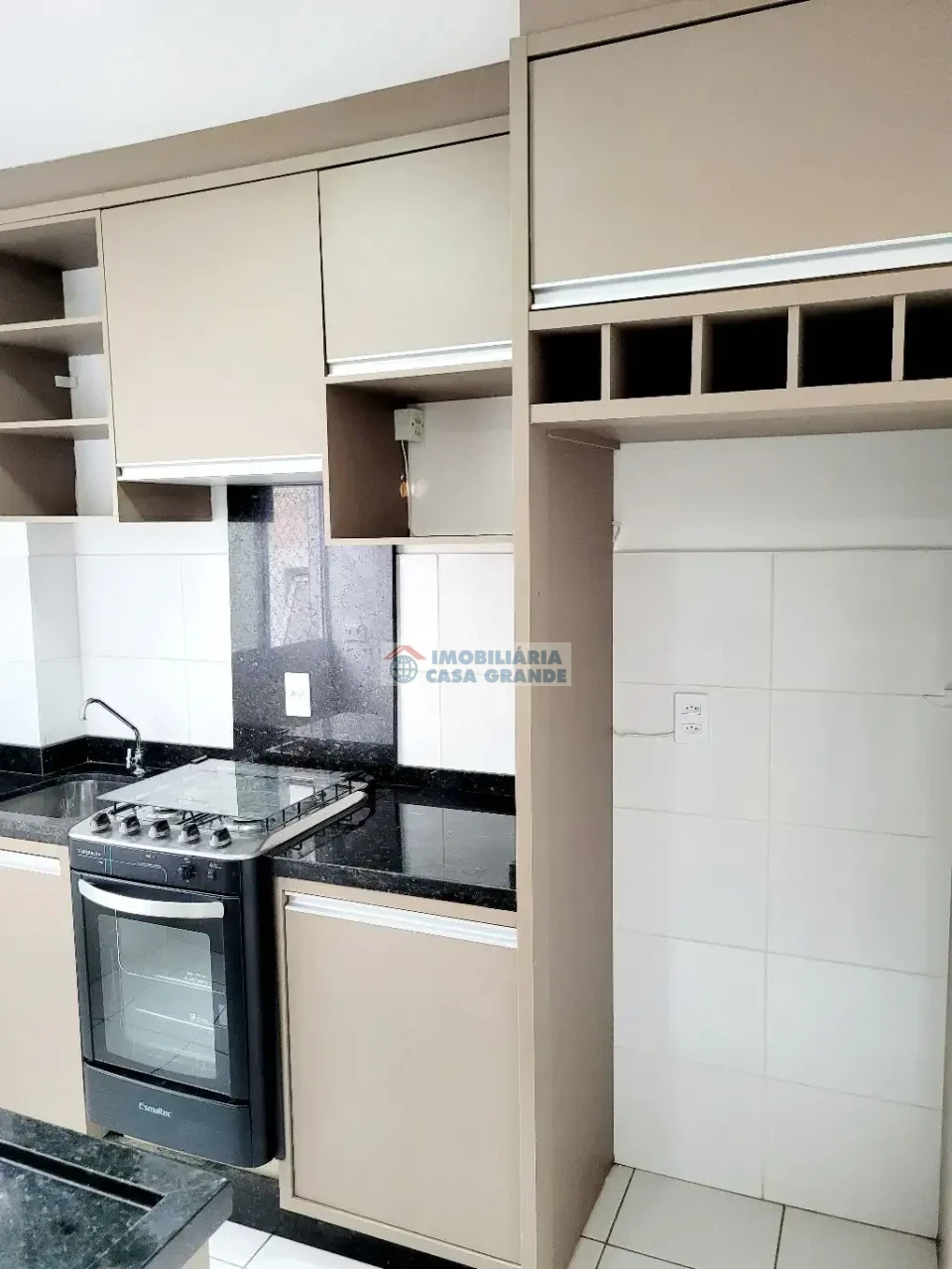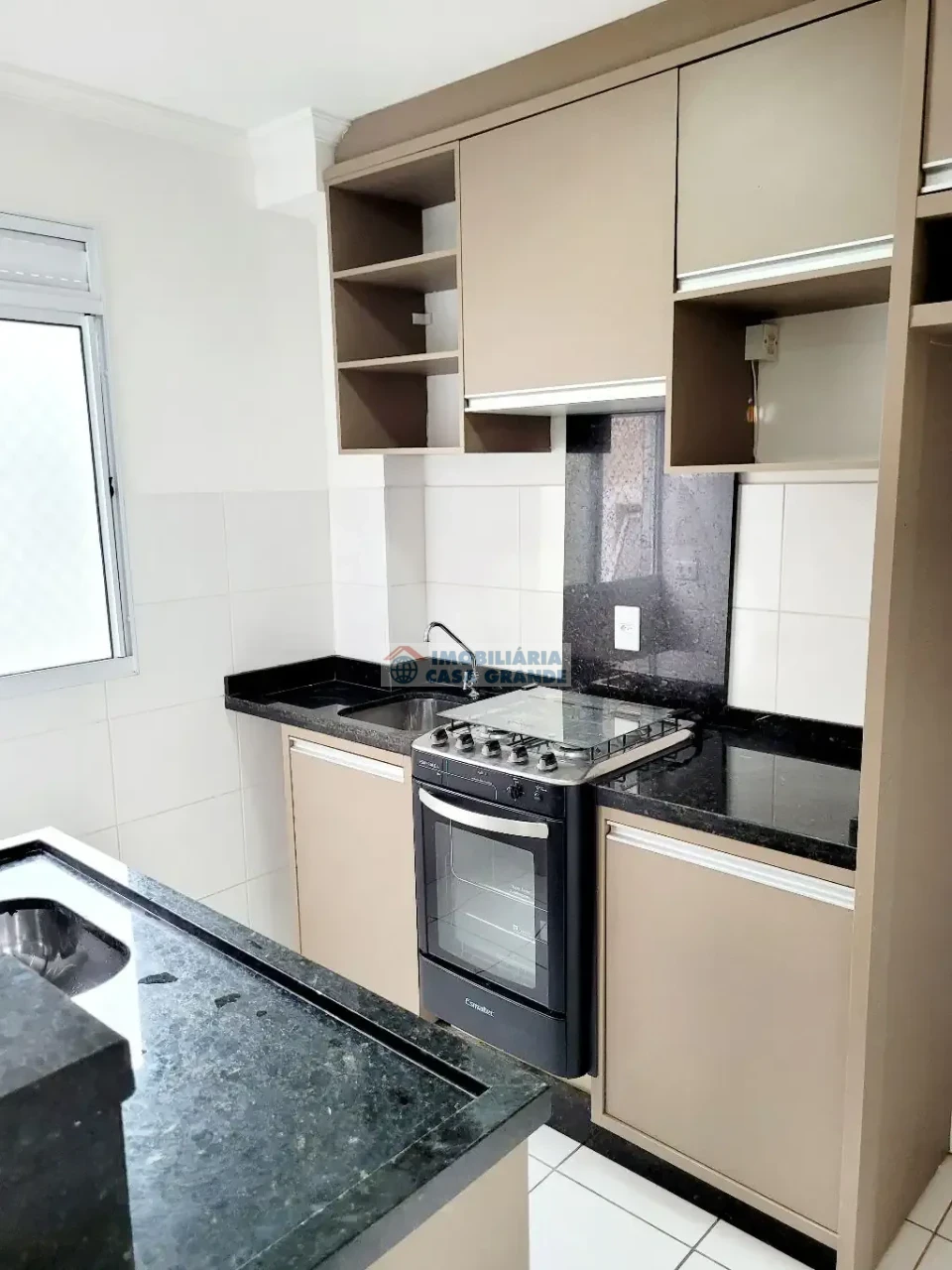 - Cozinha com bancada e armários embutidos;