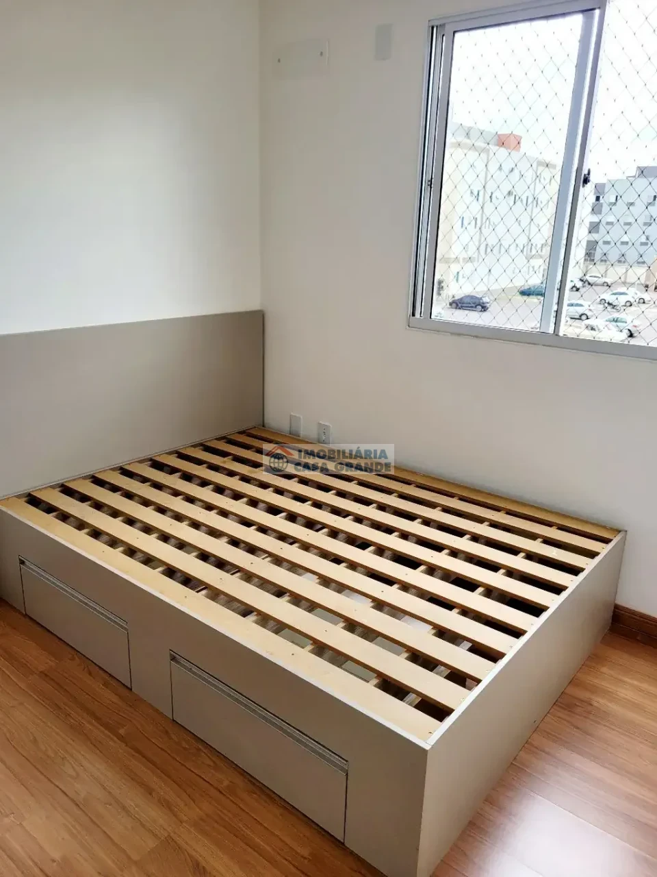 - Piso laminado na sala e quartos;