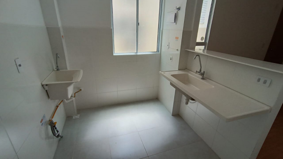 Apartamento novo com 02 quartos, sala, cozinha, banheiro, lavanderia, garagem.