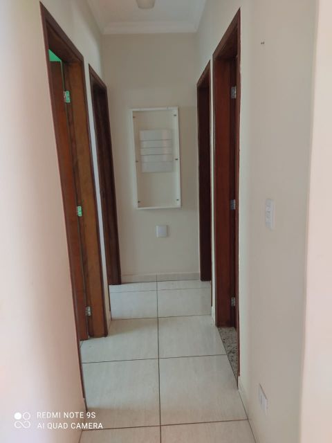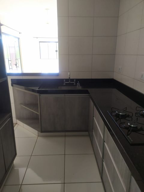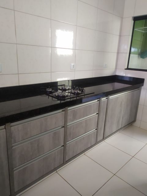 Residência em alvenaria com aprox 66 m², 03 quartos sendo 01 suíte, sala, cozinha com armários, fogão, banheiro, lavanderia, garagem.