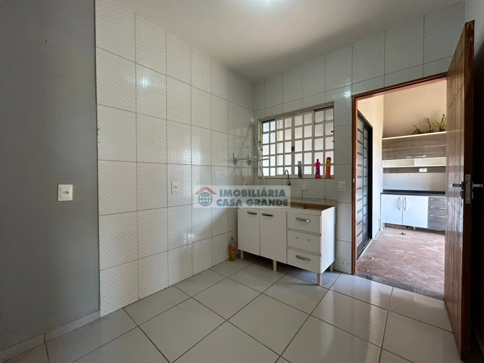 Residência em alvenaria com 275 m² de terreno e 78 m² de construção, 02 quartos, sala, cozinha, banheiro, lavanderia, espaço nos fundos e garagem.