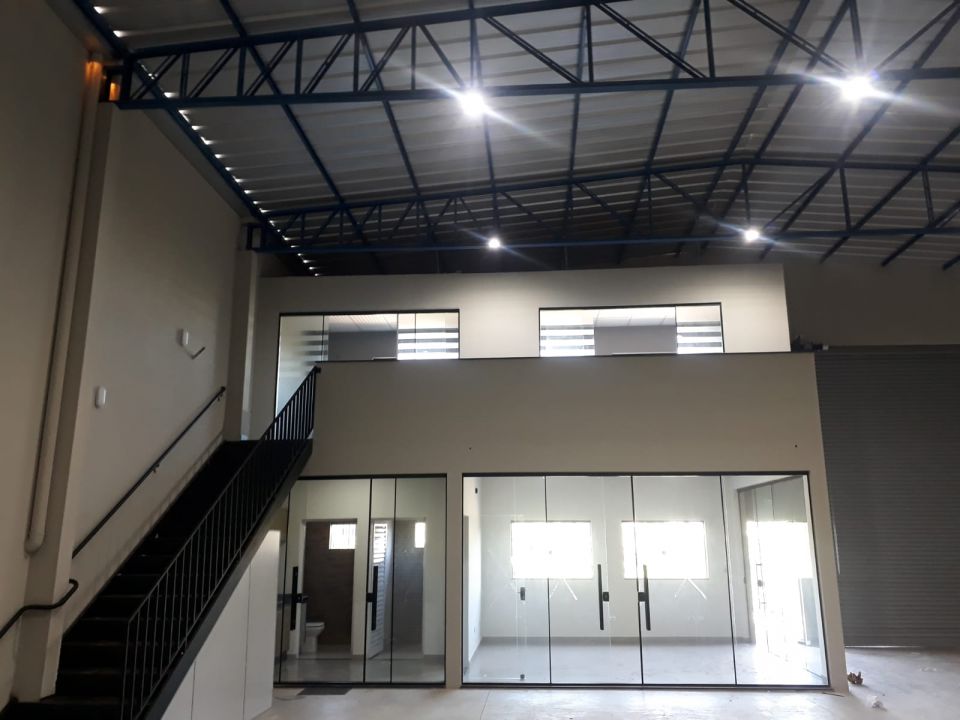 Excelente galpão comercial com aprox 330 m², escritório com piso porcelanato e portas blindex, mezanino com 2 salas, 02 banheiros com armários, copa com armários, despensa, grades de proteção em frente ao imóvel.