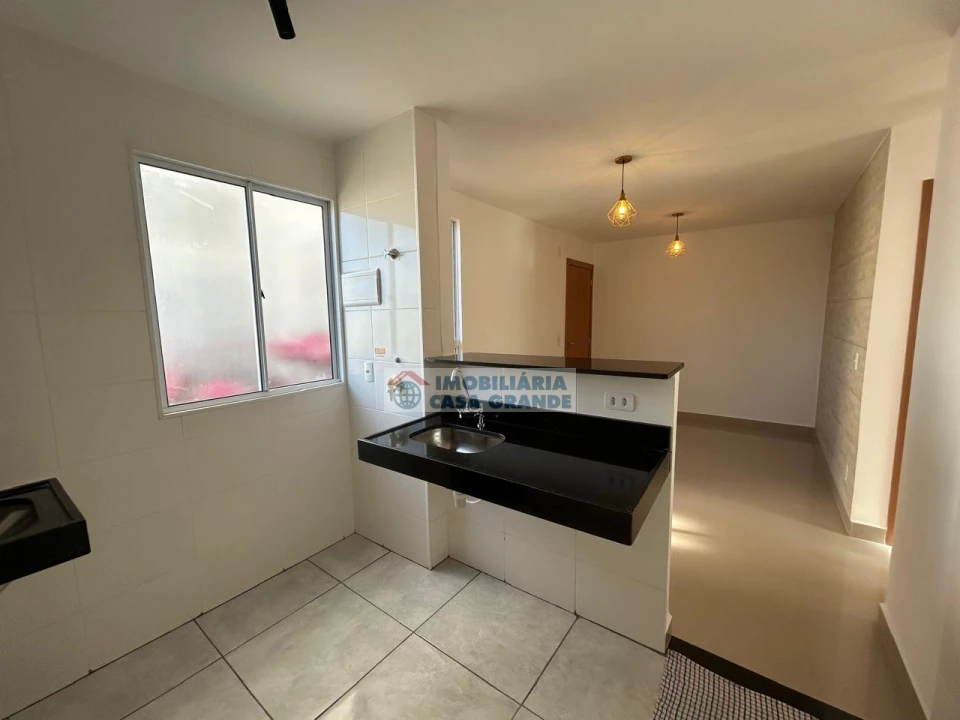 Apartamento novo térreo com aprox 45 m², 02 quartos, sala, cozinha, banheiro, lavanderia e garagem.
