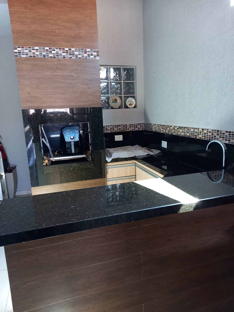 Torneiras da cozinha e churrasqueira para água quente e fria. Preparada para colocar aquecedor